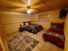 The lodge has five bedrooms, a large kitchen and dining room, a spacious living room, three full bathrooms, and a laundry room. Spend your time indoors or lounge on the front porch and get some fresh air.